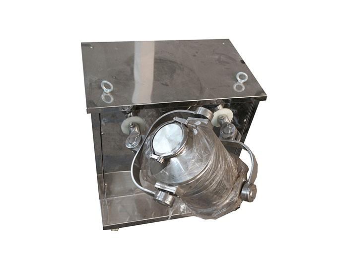 结构:该机由机座,传动系统,电器控制系统,多向运动机构,混合桶等部件组成,与物料直接接触的混合桶采用不锈钢材料制造,桶体内外壁均经抛光。