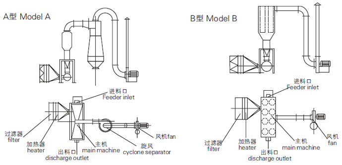 沸腾干燥,又称流化床,它是由空气过滤器、沸腾床主机、旋风分离器、布袋除尘器、高压离心通风机、操作台组成。由于干燥物料的性质不同,配套除尘设备时,可按需要而进行,可同时选择旋风分离器、布袋除尘器,也可选择其中的一种。一般来说,比重较大的物料只需选择旋风分离器;比重较轻的物料需配套布袋除尘器,并备有气力送料装置供选择。