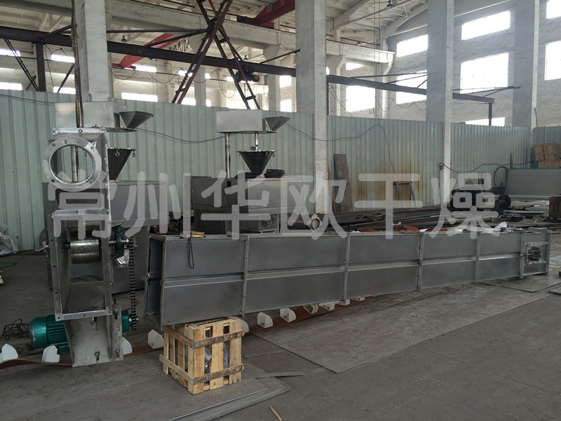 此次客户订购的是一套GZL-4制粒机,配套有斗式提升机、振动筛等,设备不锈钢制作,完全符合食品级标准,外部做抛光处理,轧辊直径:360mm,轧辊宽度:300mm,成品产量:600-1500公斤/小时(产量高低需看颗粒大小及物料比重)。